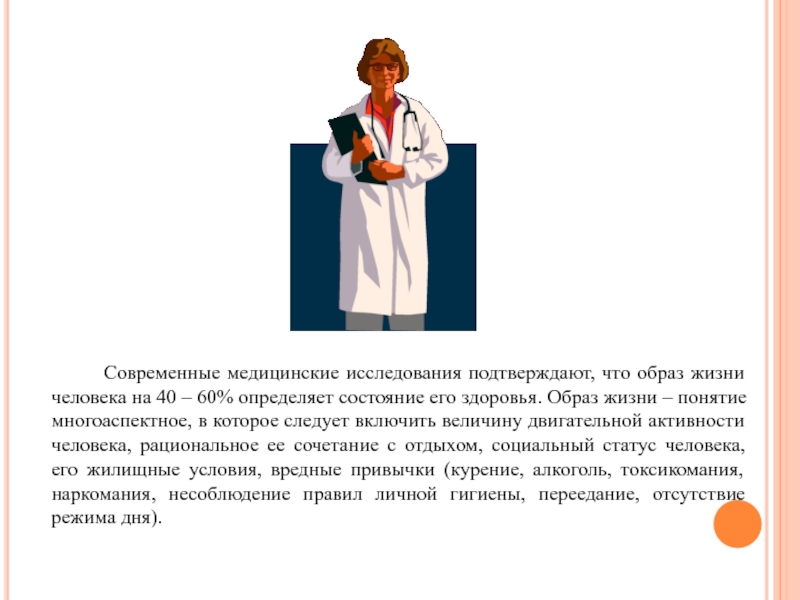 Слайд 2 Современные медицинские исследования подтверждают, что образ жизни