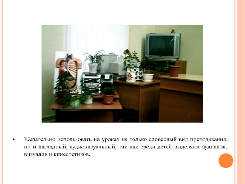 Слайд 10Желательно использовать на уроках не только словесный вид преподавания, но и