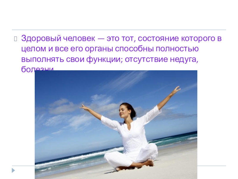Здоровый человек — это тот, состояние которого в целом и все его органы способны полностью выполнять свои функции;