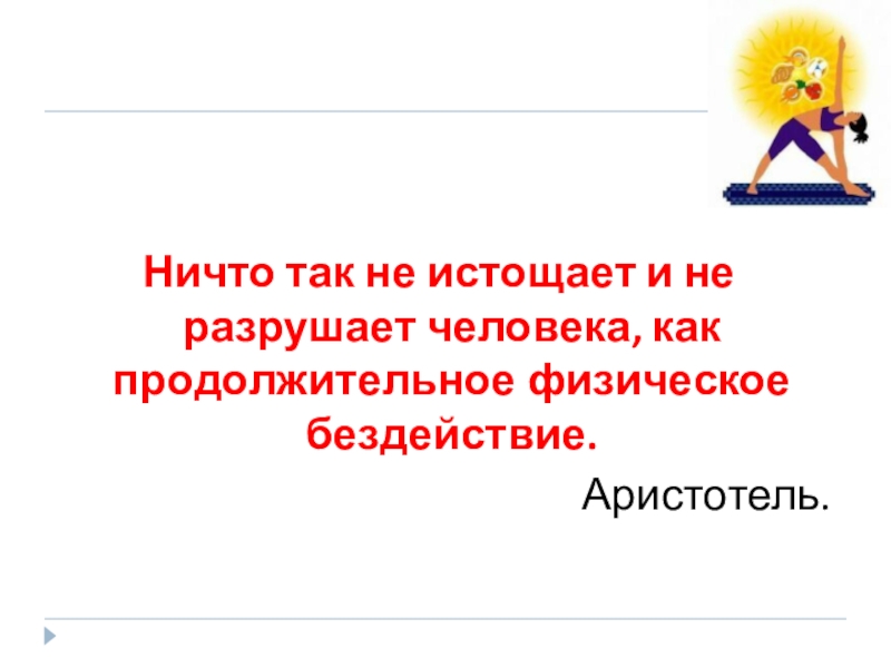 Ничто так не истощает и не разрушает человека, как продолжительное физическое бездействие.Аристотель.