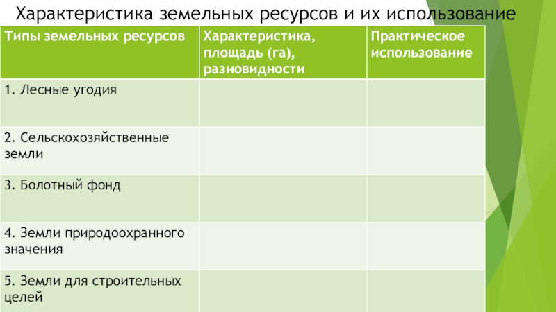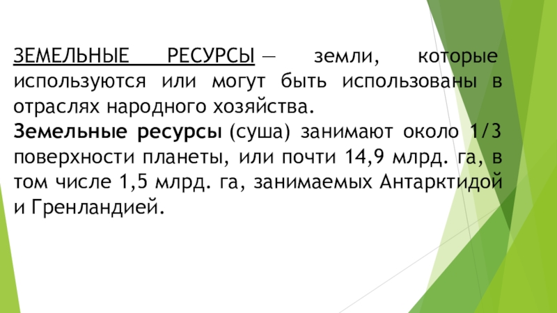 Слайд 2ЗЕМЕЛЬНЫЕ РЕСУРСЫ — земли, которые используются или могут быть использованы в отраслях