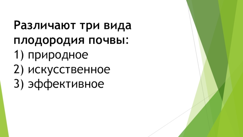 Различают три вида плодородия почвы: 1) природное 2) искусственное3) эффективное