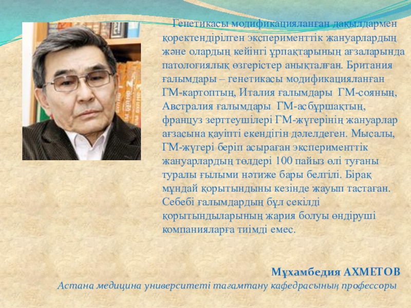 Астана медицина университеті тағамтану кафедрасының профессоры