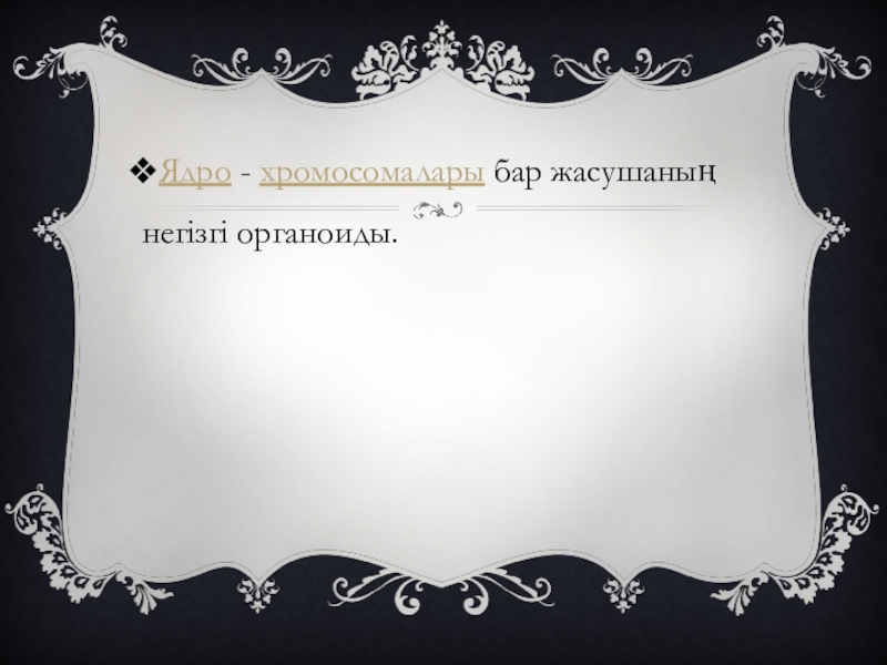 Слайд 3Ядро - хромосомалары бар жасушаның негізгі органоиды.