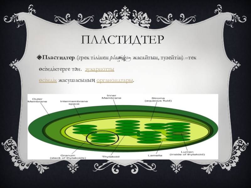 ПластидтерПластидтер (грек тілінен plastides - жасайтын, тузейтін) –тек өсімдіктерге тән.  эукариотты өсімдік жасушасының органоидтары.