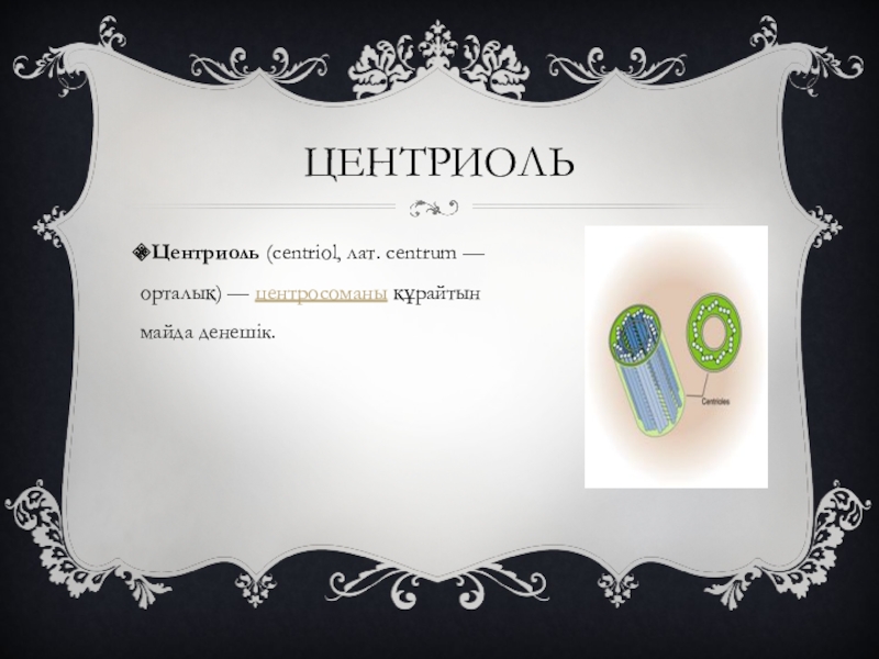 ЦентриольЦентриоль (centriol, лат. centrum — орталық) — центросоманы құрайтын майда денешік.