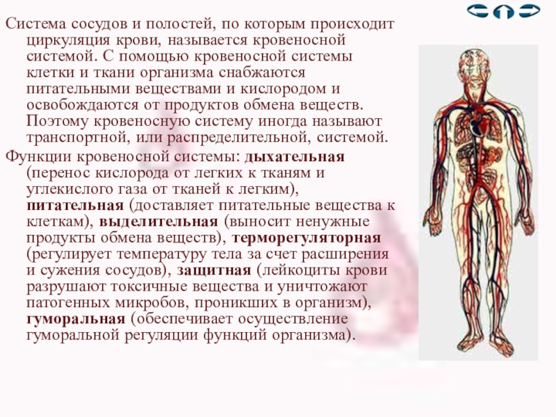 Слайд 9Система сосудов и полостей, по которым происходит циркуляция крови, называется кровеносной