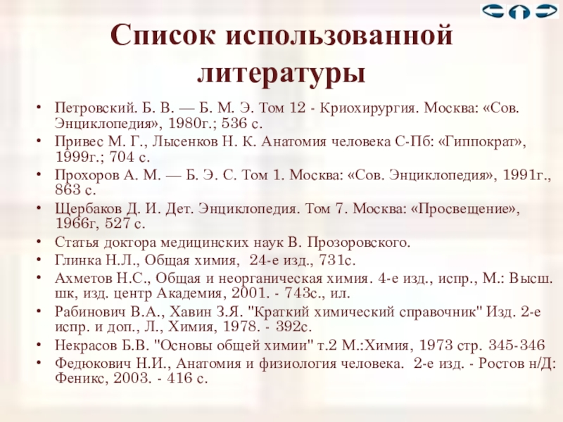 - Криохирургия. Москва: «Сов. Энциклопедия», 1980г.; 536 с.