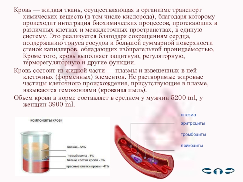 Слайд 11Кровь — жидкая ткань, осуществляющая в организме транспорт химических веществ (в