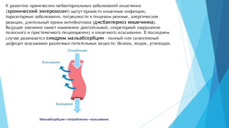Слайд 11К развитию хронических небактериальных заболеваний кишечника (хронический энтероколит) могут привести кишечные