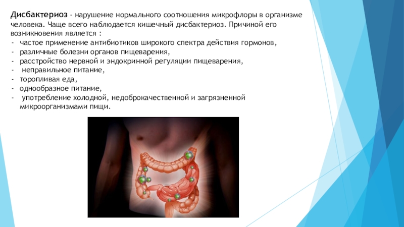 Слайд 3Дисбактериоз - нарушение нормального соотношения микрофлоры в организме человека. Чаще всего