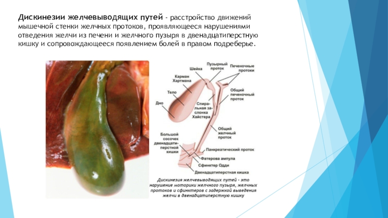 Слайд 13Дискинезии желчевыводящих путей - расстройство движений мышечной стенки желчных протоков, проявляющееся