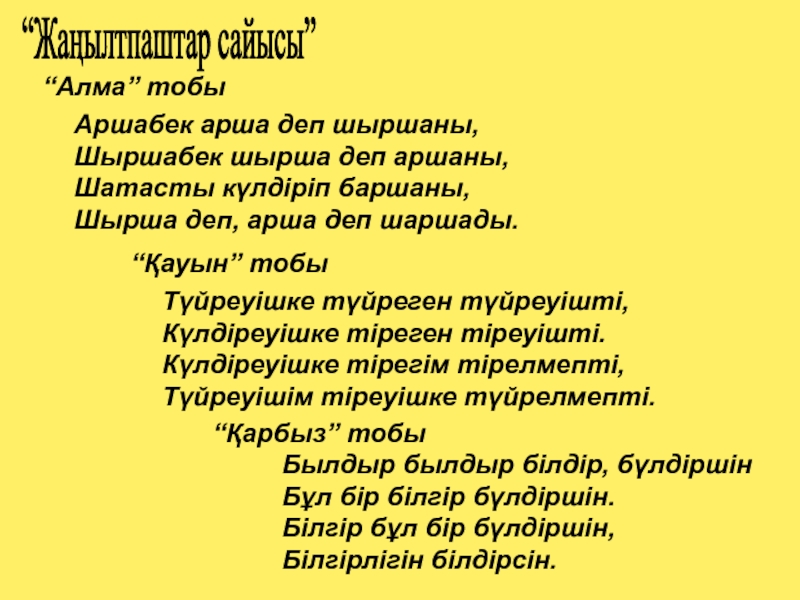 Желмен: 1.Үйеңкі, 4.Бақ-бақ, 8.Қайың.