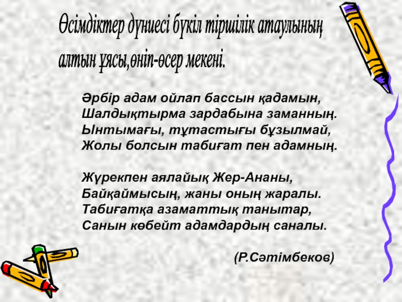 Өздігінен: 2.Қарағай, 9.Жауқазын.