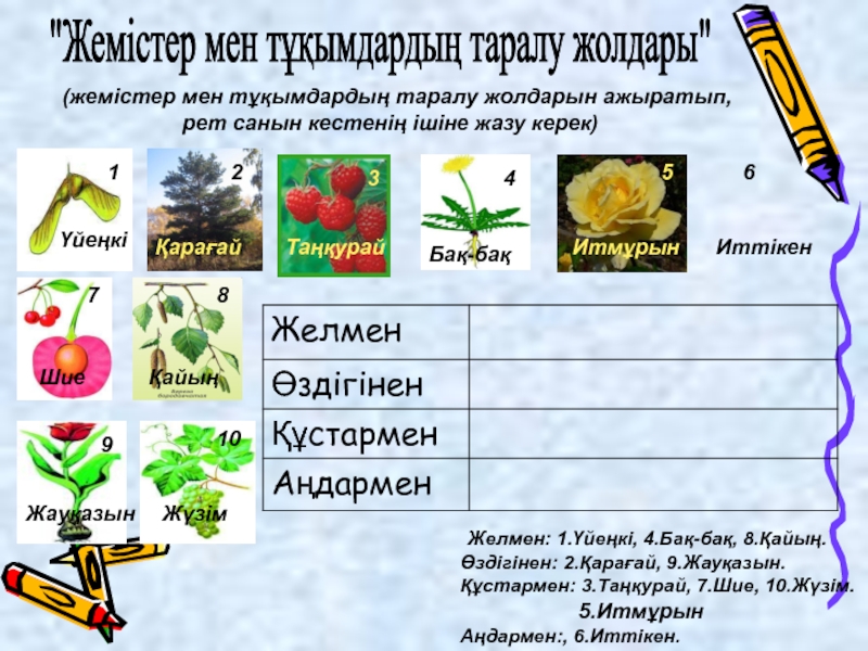 Құстармен: 3.Таңқурай, 7.Шие, 10.Жүзім.