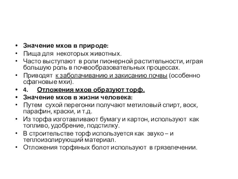 Значение мхов в жизни человека: