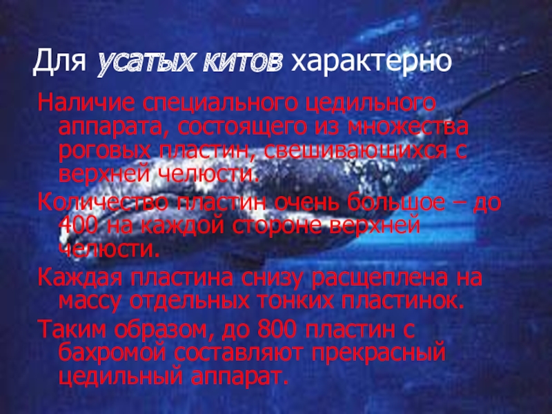 Количество пластин очень большое – до 400 на каждой стороне верхней челюсти.