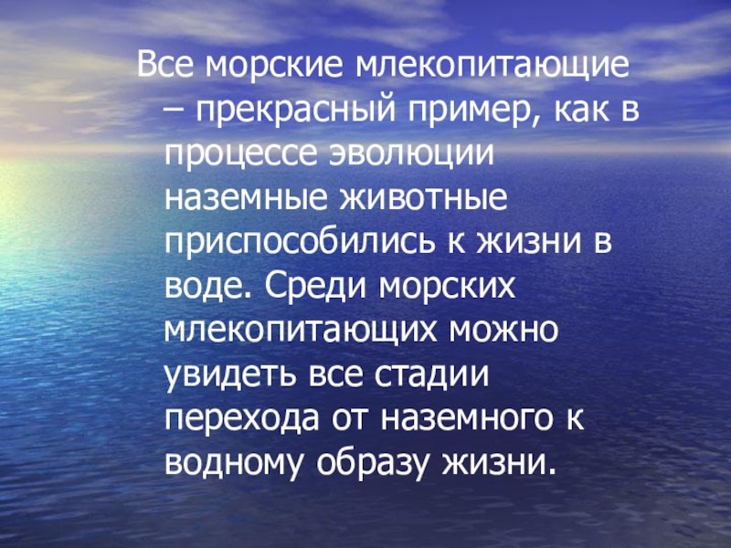Слайд 2Все морские млекопитающие – прекрасный пример, как в процессе эволюции наземные