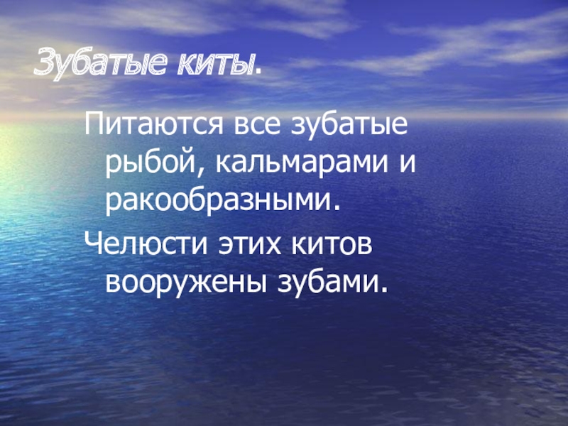 Зубатые (кашалот, бутылконос, белуха, единорог и др. виды дельфинов).