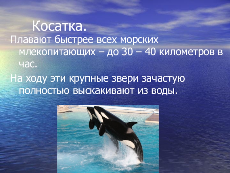 Плавают быстрее всех морских млекопитающих – до 30 – 40