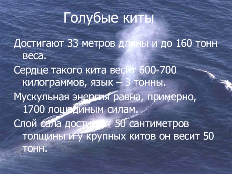 Слой сала достигает 50 сантиметров толщины и у крупных китов он весит 50 тонн.