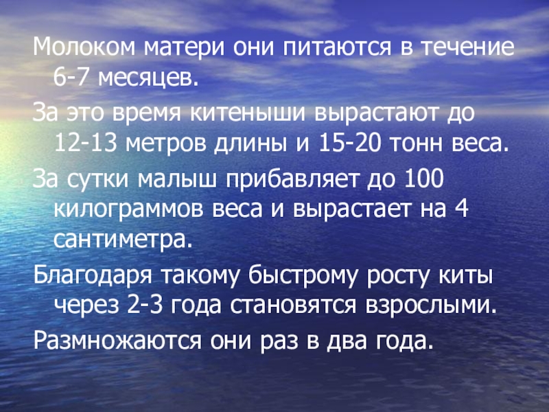 Слайд 12Молоком матери они питаются в течение 6-7 месяцев.
