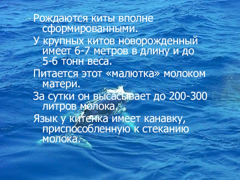Язык у китенка имеет канавку, приспособленную к стеканию молока.