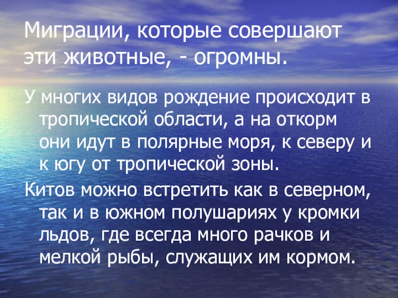 Слайд 17Миграции, которые совершают эти животные, - огромны.