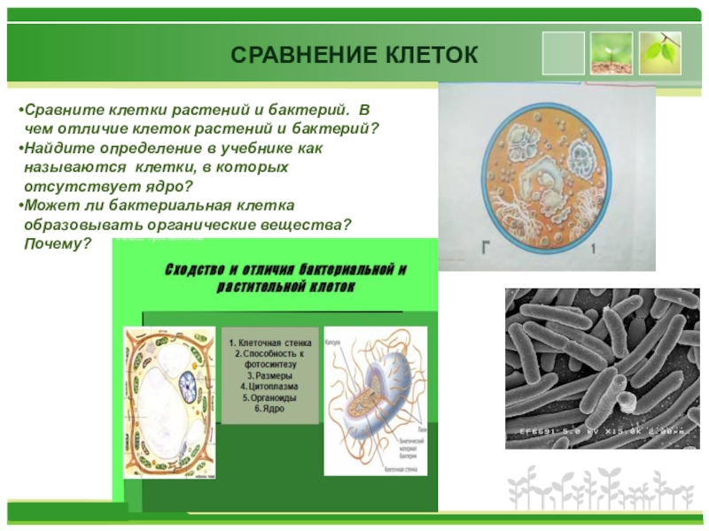 Сравните клетки растений и бактерий. В чем отличие клеток