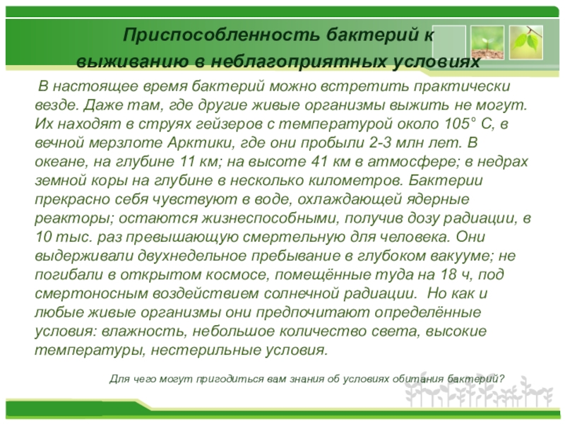 Для чего могут пригодиться вам знания об условиях обитания бактерий?