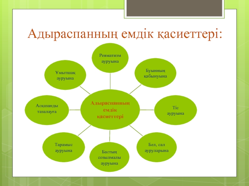 Қазіргі медицинада адыраспанның емдік қасиеттерін қолдану енгізілсе.