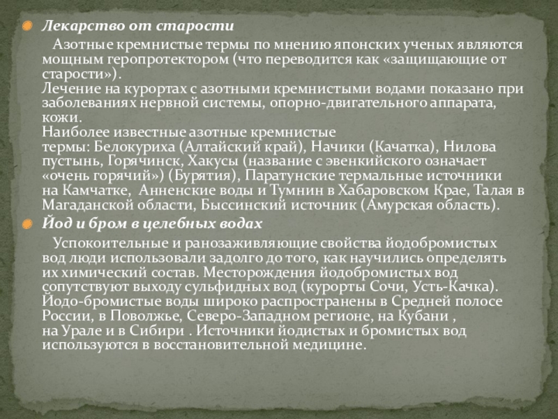 Азотные кремнистые термы по мнению японских ученых являются мощным