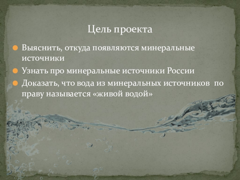 Слайд 2Выяснить, откуда появляются минеральные источники