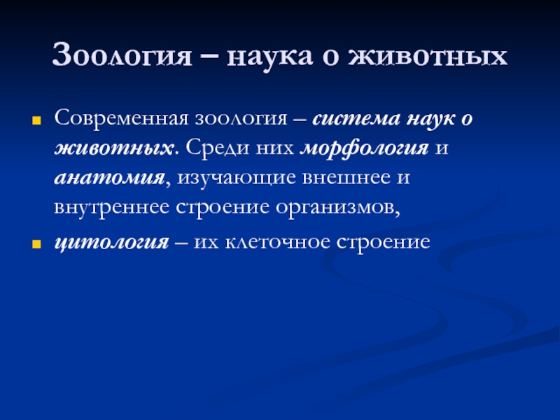 Слайд 4Зоология – наука о животных
