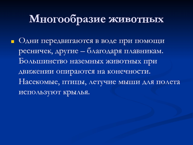 Большинство наземных животных при движении опираются на конечности. Насекомые, птицы, летучие мыши для полета используют крылья.