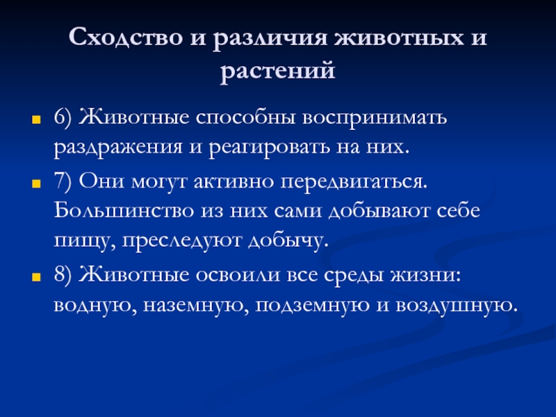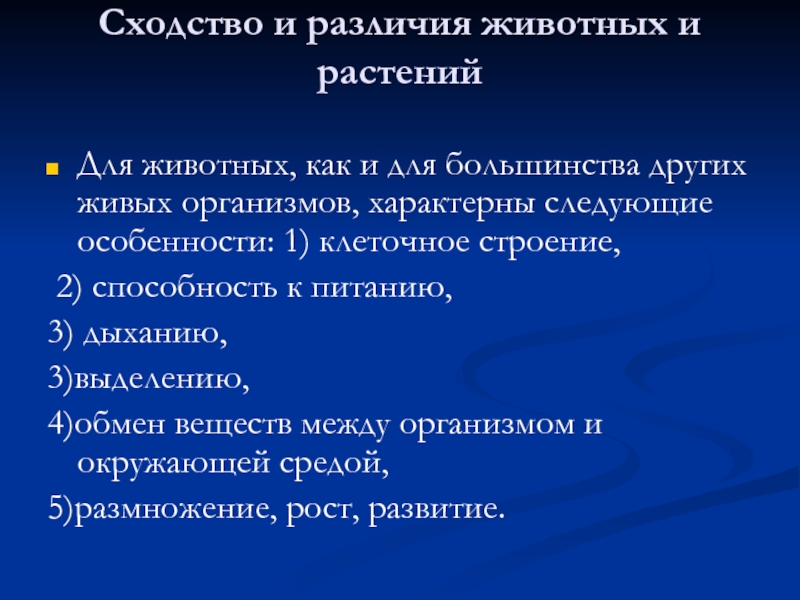 4. Какие признаки характерны для животных? В чем их отличие от растений?