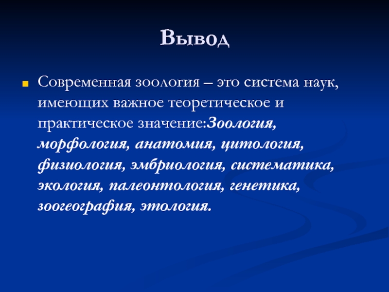 Современная зоология – это система наук, имеющих важное теоретическое и практическое значение:Зоология,