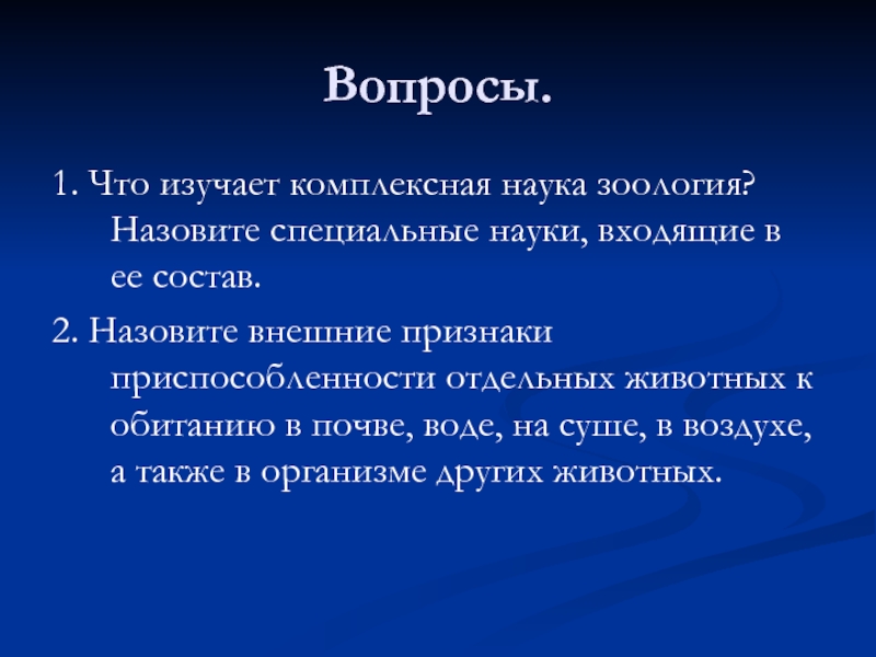 1. Что изучает комплексная наука зоология? Назовите специальные науки, входящие в