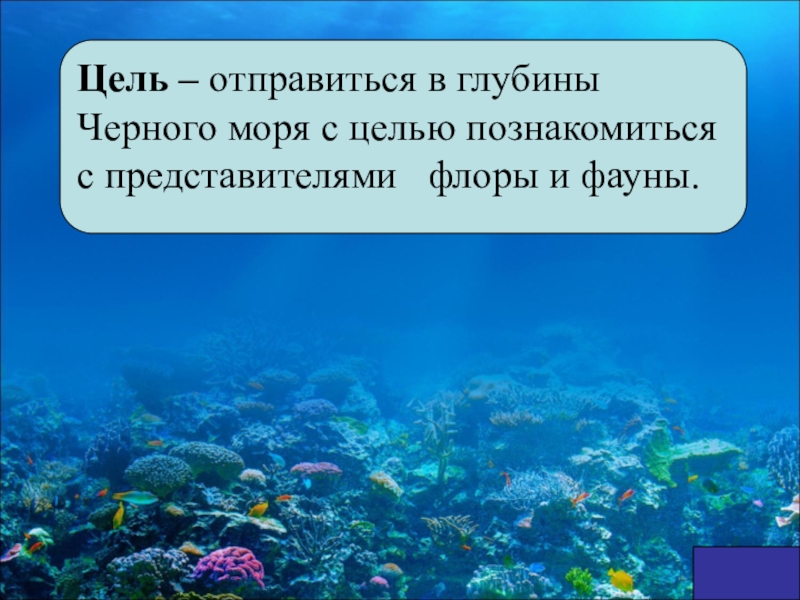 Цель – отправиться в глубины Черного моря с целью познакомиться с представителями  флоры и фауны.