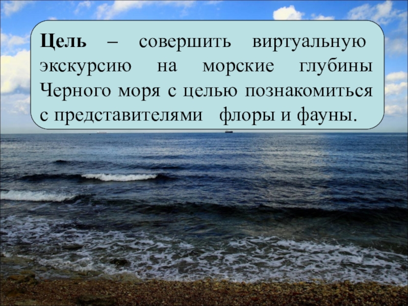 Слайд 2Цель – совершить виртуальную экскурсию на морские глубины Черного моря с
