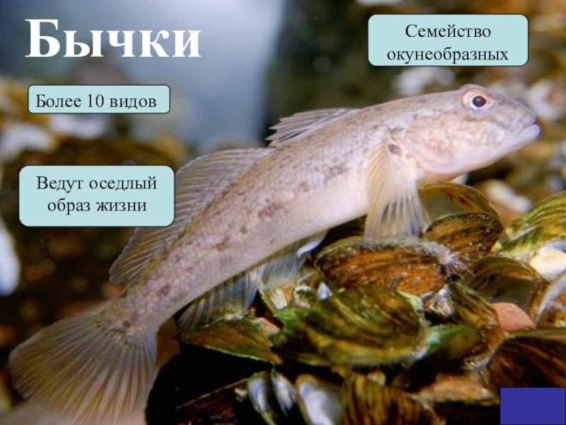 БычкиСемейство окунеобразныхБолее 10 видовВедут оседлый образ жизни