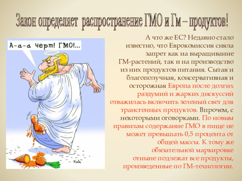 Закон определяет распространение ГМО и Гм – продуктов!