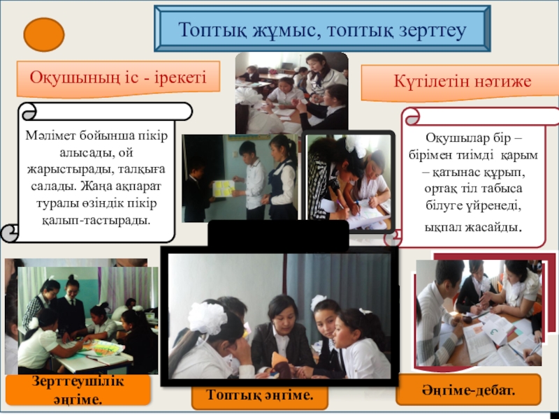 Топтық жұмыстағы өзін-өзі бағалау парағы