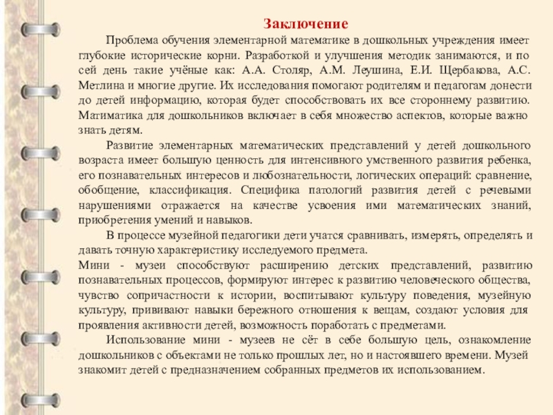 6. Леушина, А. М. Формирование элементарных математических представлений у детей дошкольного возраста. - М., 1994.