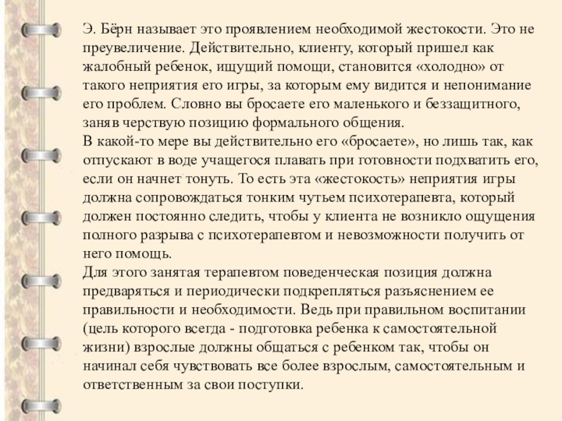 Слайд 15Э. Бёрн называет это проявлением необходимой жестокости. Это не преувеличение. Действительно,