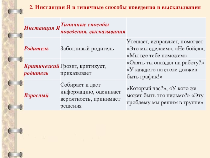 Слайд 62. Инстанции Я и типичные способы поведения и высказывания