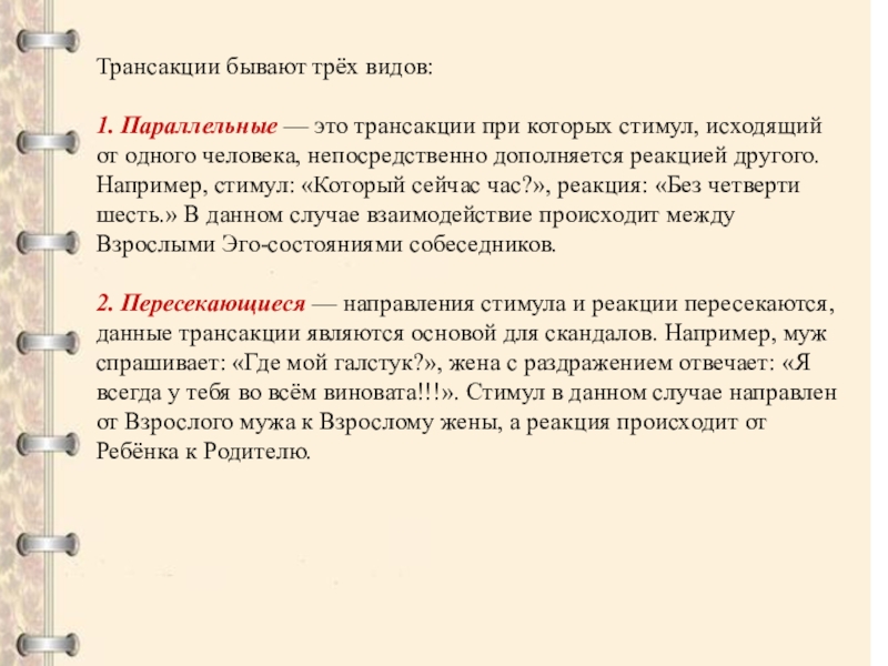 1. Параллельные — это трансакции при которых стимул, исходящий от