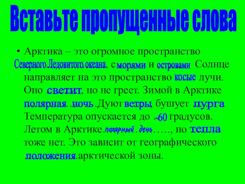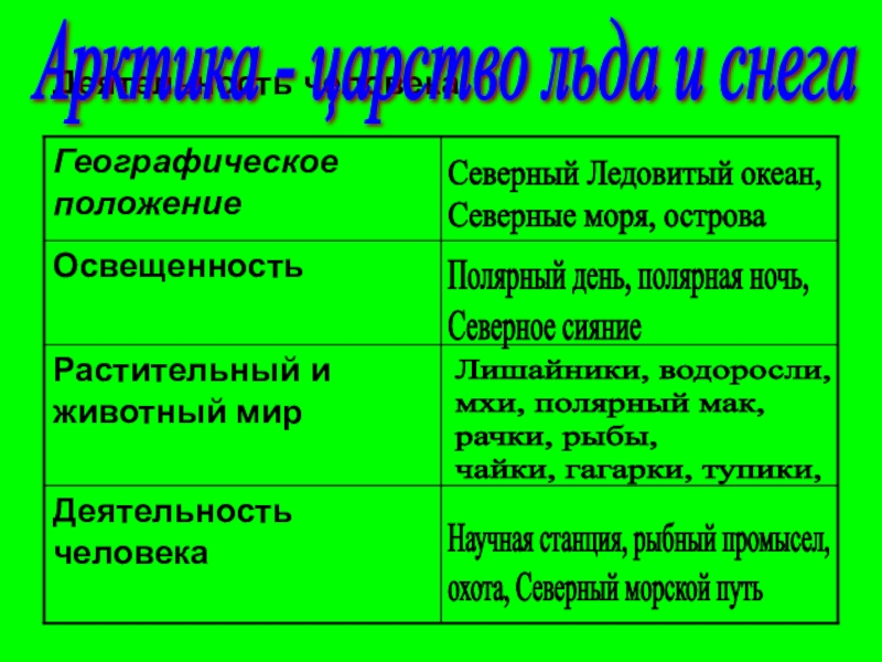 Цель. Познакомить с Арктикой; с особенностями её природы и значением для человека.