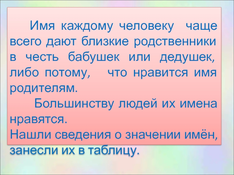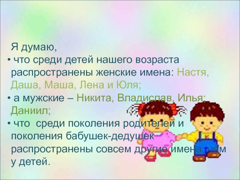 ПО ЭТОМУ СПИСКУ ВЫЯВИЛИ ИМЕНА ДЕТЕЙ, ИМЕНА ИХ МАМ И ПАП, А ПО ОТЧЕСТВАМ ИМЕНА ДЕДУШЕК.