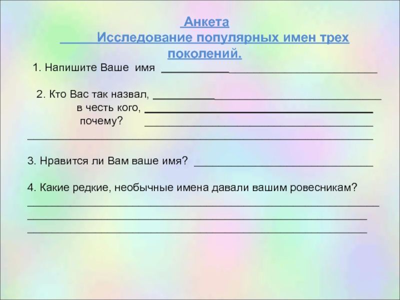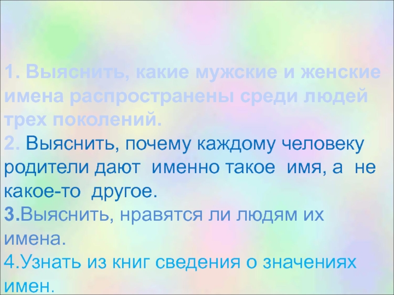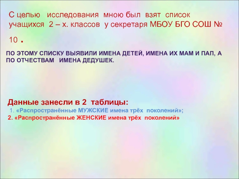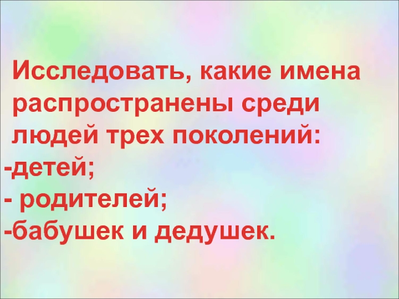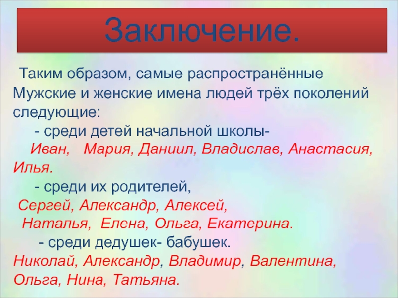 1. «Распространённые МУЖСКИЕ имена трёх поколений»;